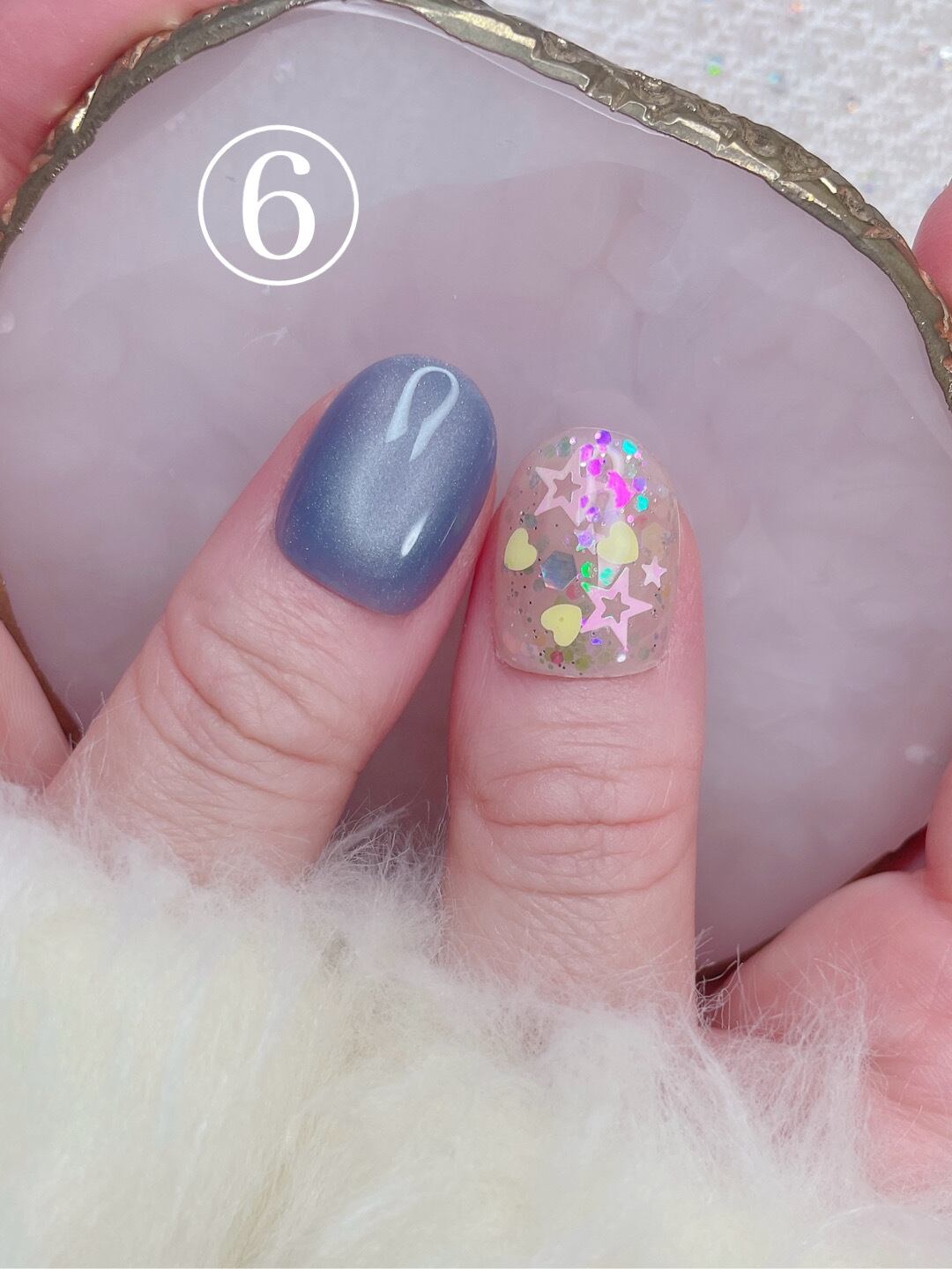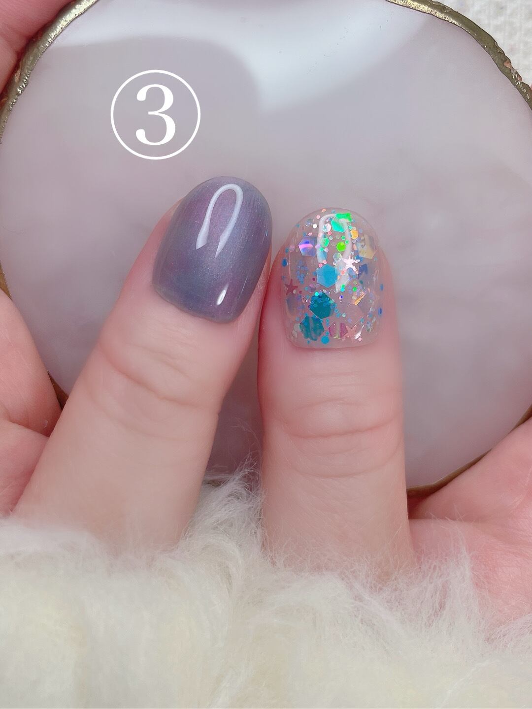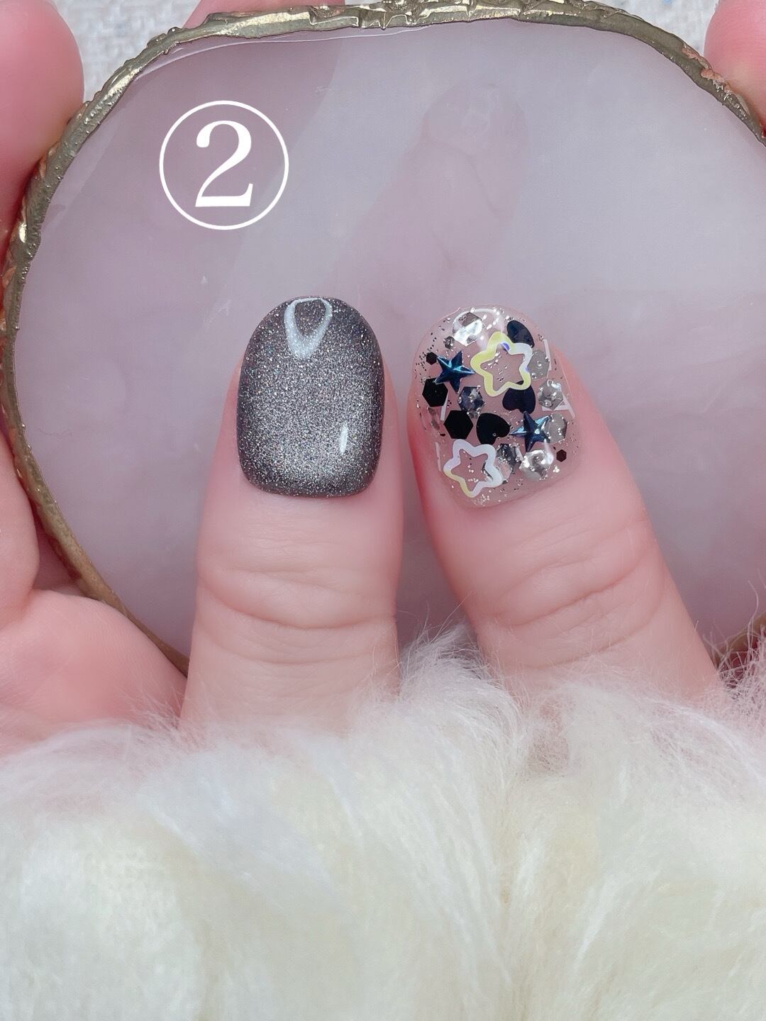 マグネットカラーとホログラムを合わせたシンプルなネイルチップ。