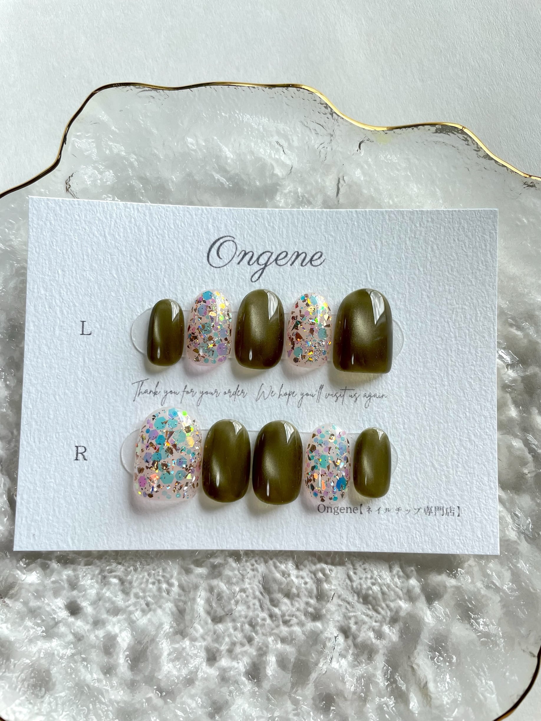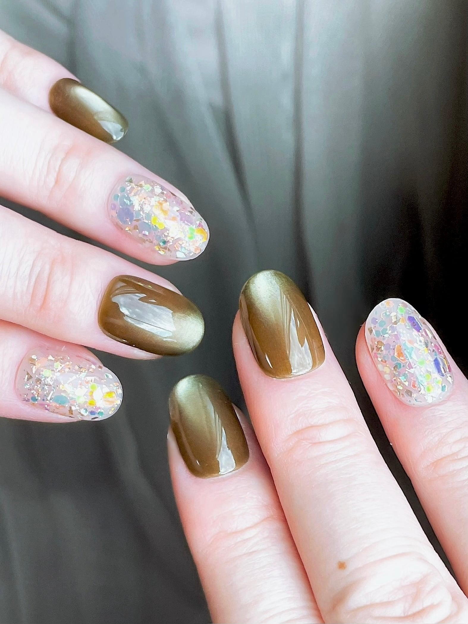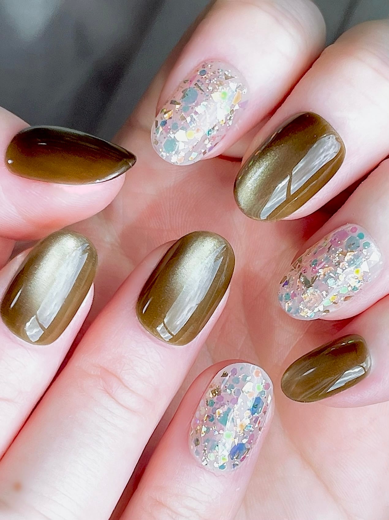 マグネットカラーとホログラムを合わせたシンプルなネイルチップ。