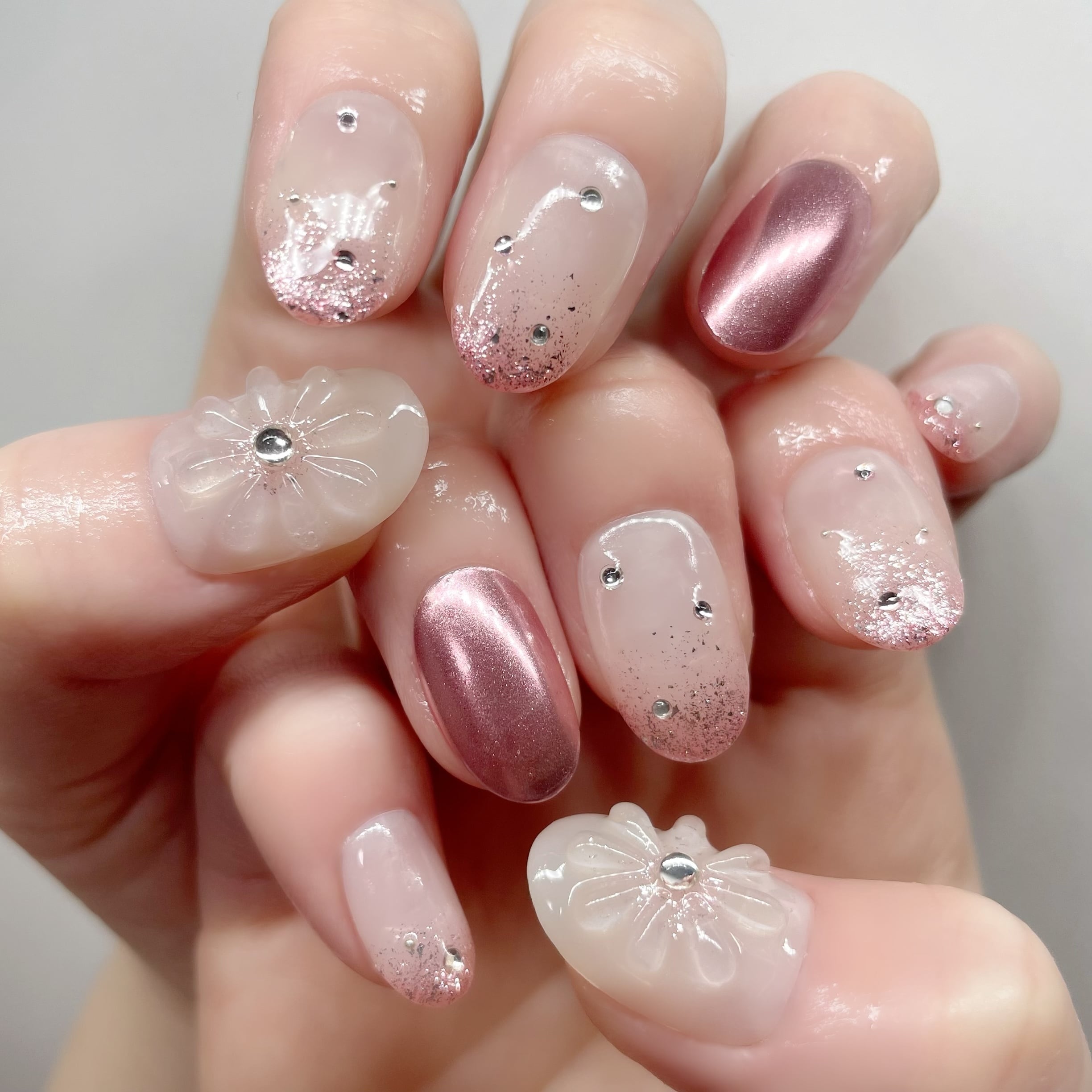ピンクカラーとぷっくりお花アートが可愛い